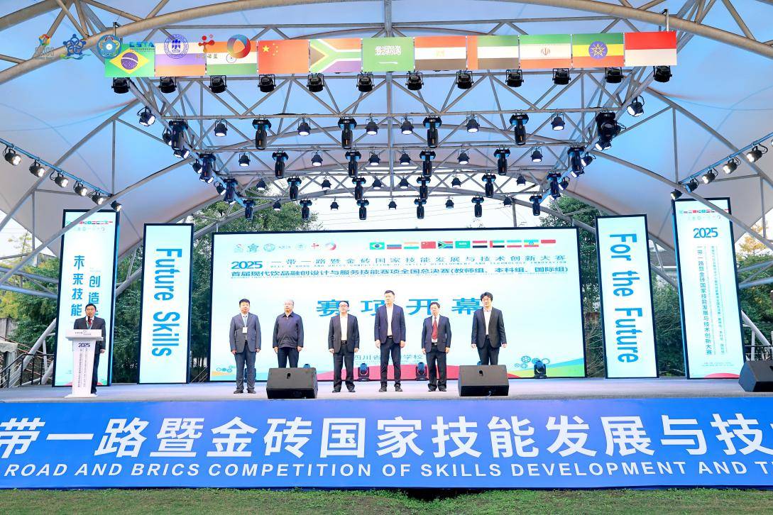大赛以“新式茶饮、时尚调饮、微醺酒饮、创意咖啡”四大分赛项为核心,搭建起技能展示、创新交流的重要平台。在新兴市场与“一带一路”共建国家持续扩大开放的背景下,新式茶饮正以独特魅力架起中外文化交流的桥梁,成为推动“民相亲、心相通”的文化使者。开幕式现场,参赛选手与指导教师、行业专家与裁判团队,以及商业饮食服务业发展中心茶馆办及高校领导齐聚一堂,共赴这场以“技能”为基、以“创新”为翼的职业教育盛宴,不仅是对成都作为历史上中外文明互鉴重要节点的呼应,更将为深化“一带一路”共建国家与金砖国家间的技能合作与人文交流、推动现代饮品行业高质量发展注入新动能。